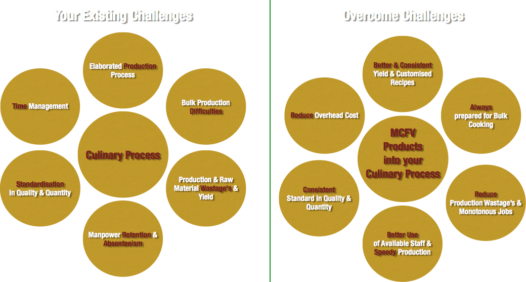 To facilitate hoteliers and caterers in their day-to-day food production. Our products enable: